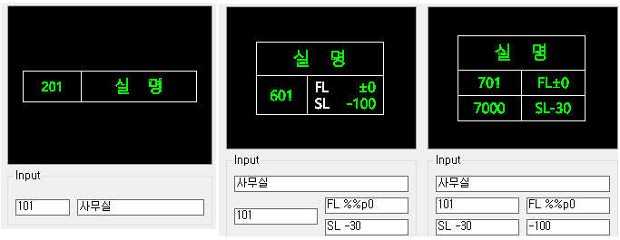 속성블럭과 그리기시 입력이 긴 실명의 경우 글자맞춤형으로 삽입