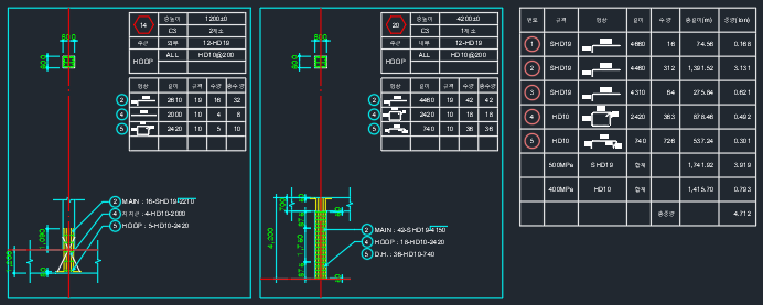 - 기둥 리스트 DB를 이용하여 기둥 철근 배근 상세도를 작성