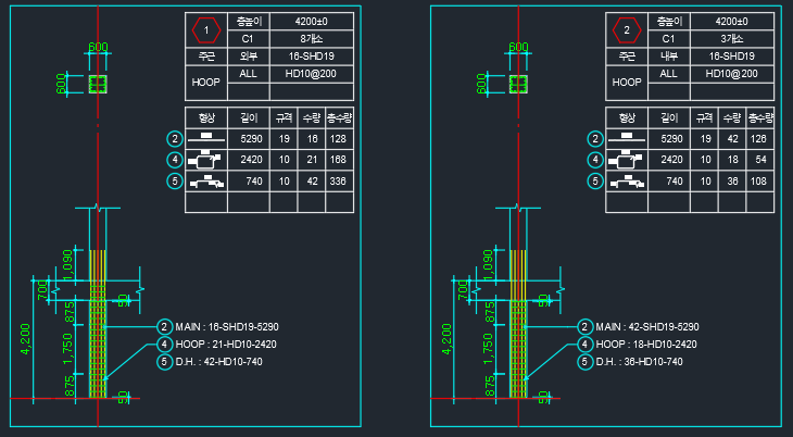 RCD - 기둥 철근 배근 상세도 (철근샵 드로잉)