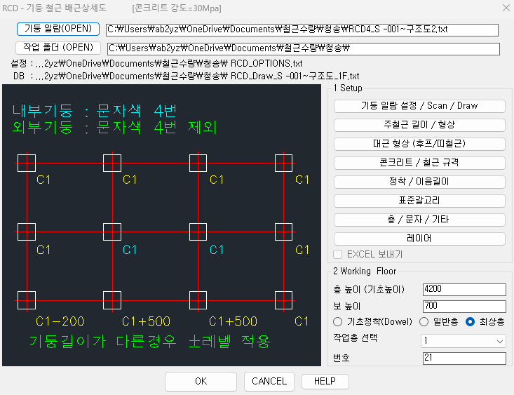 - DB : c:\OO...\RCD_Draw_캐드파일명_1F.txt (층수 확인용)