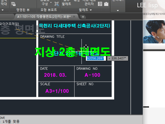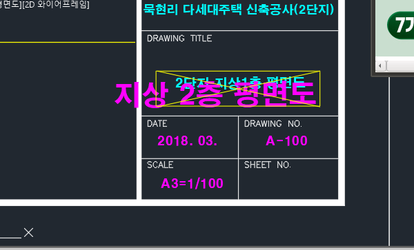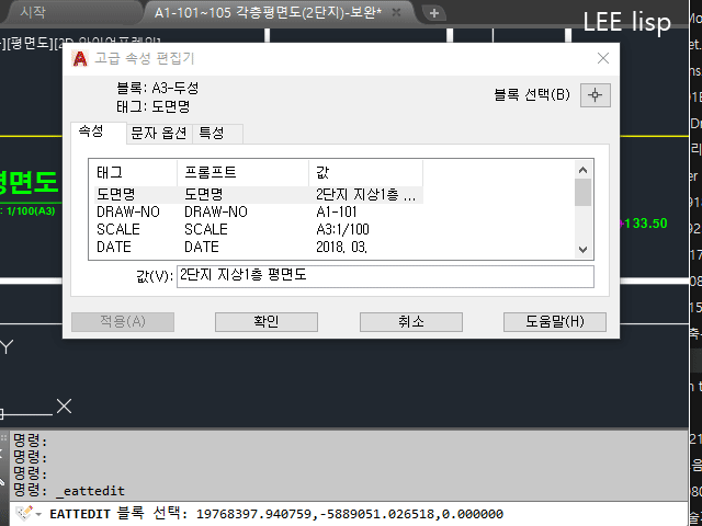 - 1단계 - 도면번호, 도면명, 축척(A1&A3), 날짜중 선택된 명령진행