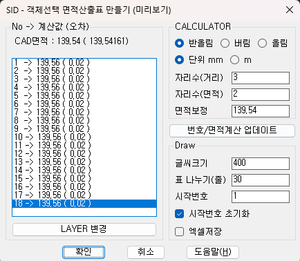 ◆ 면적 업데이트 : 자릿수, 단위, 면적보정후 면적계산 갱신