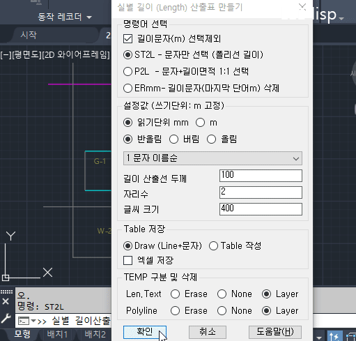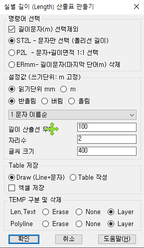 - 같은 문자별로 길이 소계와 레이어 구분 가능
