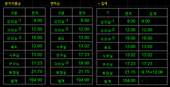 (1) 표기방식에 따라 구역별 합계 및 산출(집계)표기
