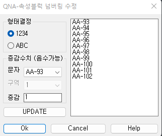 - 기준문자와 속성블럭 모두 업데이트 하여 마지막 번호를 확인가능