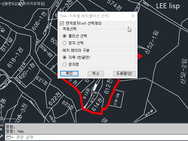 - 문자선택 또는 폴리선 선택