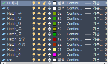 명령 ST2A중 HatchLayerSplit (해치레이어분류)으로 레이어 이름별로 패턴변경가능