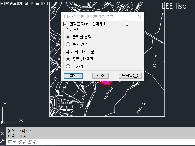 P2A - 면적객체(폴리선등)+문자연동 면적산출