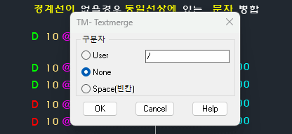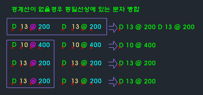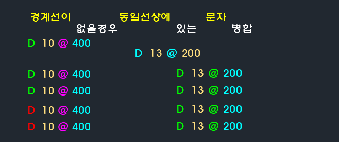 - 여러개의 문자를 하나로 병합 : (예) D 13 @ 200