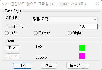 - 메모장 또는 엑셀에서 클립복사한 내용을 캐드표로 작성 (2022G4이후 신설)