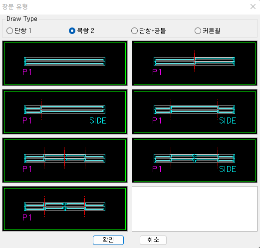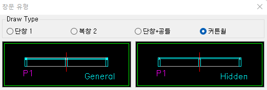 5) 열림 방향 : 편측에 열리는 창이 있을경우 방향선택
