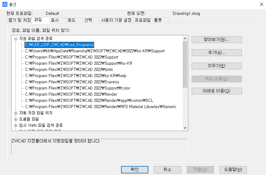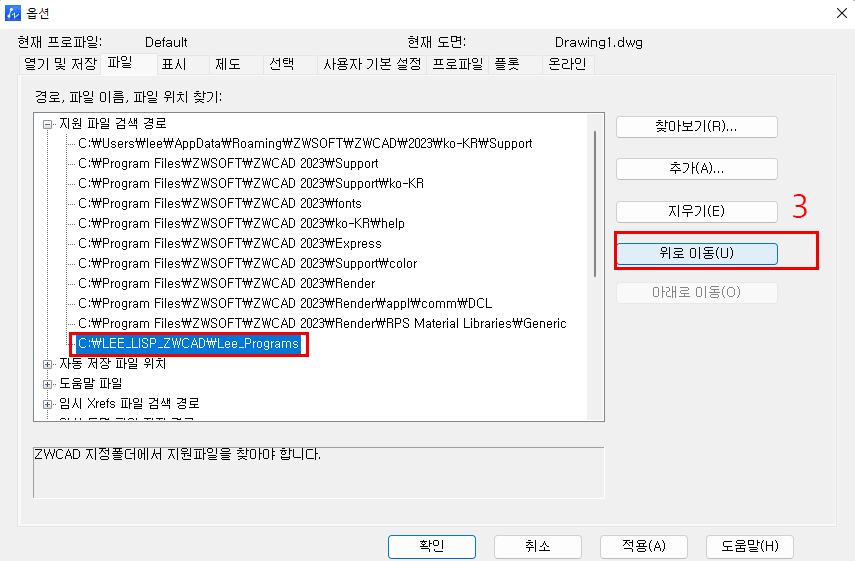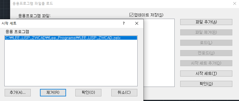 2. 리습프로그램 경로 추가 ( Lee_LISP_ZWCAD.zelx 파일이 있는 경로 )