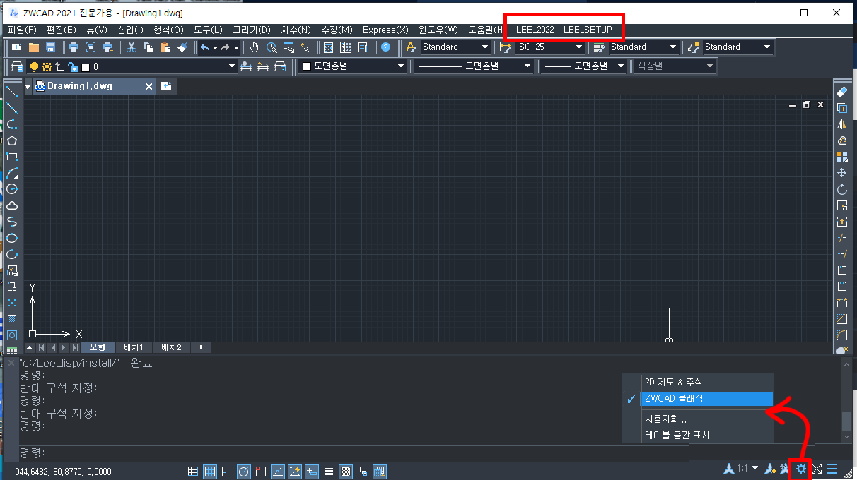 예) LEE리습2023 C:\lee_lisp_ZWCAD\lee_Programs"