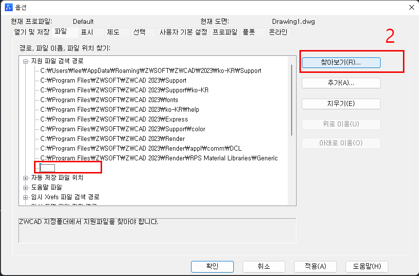 ZWCAD, ZYXCAD가 검색이 안될경우 (수동 설정)