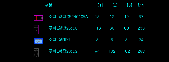 - 순서 : 옵션 DCL ▶ 1구역 선택 ▶ N구역 선택 ... ▶ 엔터(or 스페이스바) ▶ 산출서 삽입점 선택