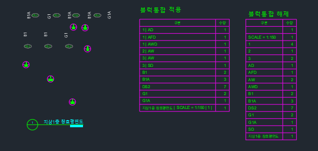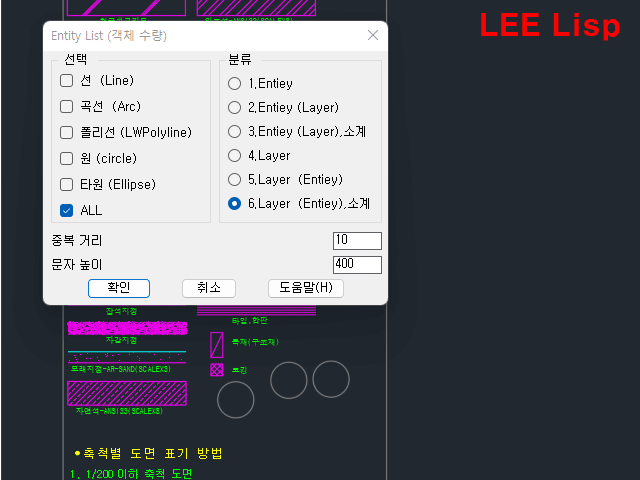 - 분류 : 객체종류 / 레이어 / 객체+레이어 / 객체+레이어+소계 / 레이어+객체 / 레이어+객체+소계