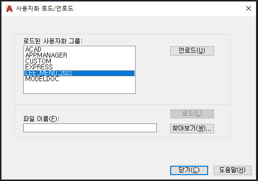 - CAD명령어 : menuload ▶ 찾아보기 ▶ Load