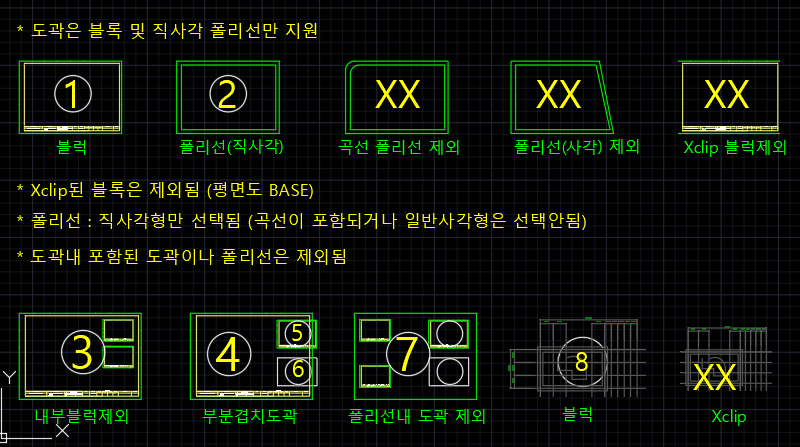 - 폴리선 2개의 옵션모두 선택하면 특정레이어 폴리선(Close)된만 선택