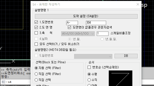 2-1 번호+이름(S4SET) : 도곽블럭명 도면번호 설정 실행 #S4SET
