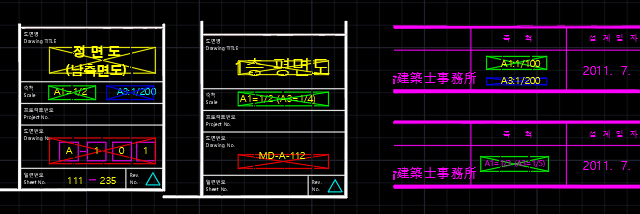 - 가로표제란 및 세로표제란등 프로젝트별 도곽에 따라 적용가능