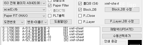 DCL 옵션 (2022B6이후) 1. 도면선택 및 필터설정 (https://leelisp.tistory.com/entry/S4SET) 도곽블럭 자동선택 출력 목록 생성 DCL ( 스케일,인쇄영역,인쇄순서 등 자동설정 ) 도곽선택Filter에서 선택한..