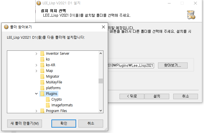 - 읽기전용인 C:\Program Files\LEE_LISP 또는 CAD내 plugin 폴더등 사용자 선택가능 ( LM명령어등 일부 사용불가 )