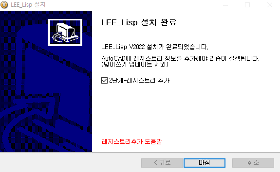 - 2단계 - LEE_Lisp 설정 프로그램 실행 (레지스트리 정보추가 )