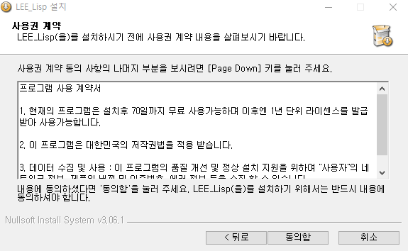 1단계 - 설치 프로그램 실행 ( SETUP_LEE_Lisp_2024.exe )
