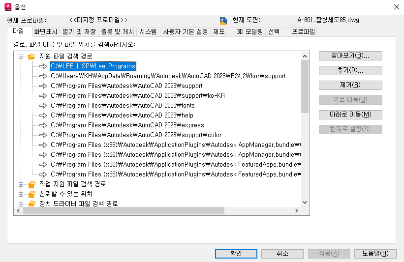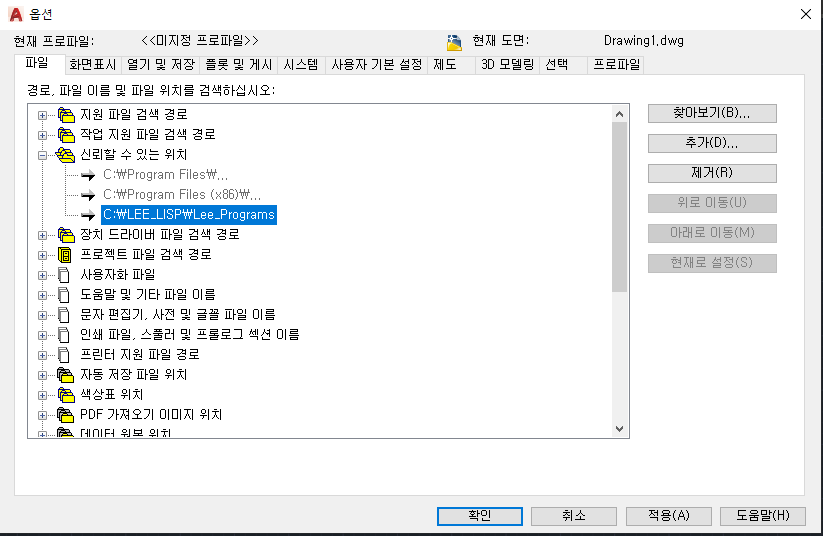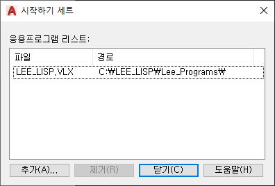 2. 리습 프로그램 경로 추가 ( LEE_LISP.LSP 파일이 있는 경로 )