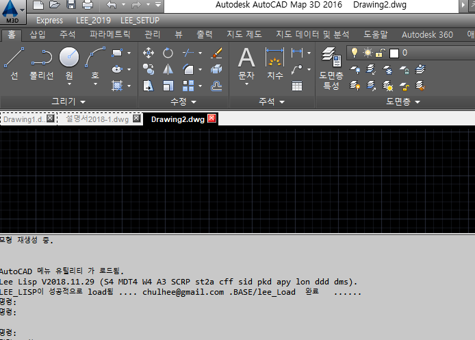 APPLOAD > 시작하기 모음 (목차) > 추가 > Lee_LISP.LSP 또는 Lee_LISP_main.fas, Lee_LISP.VLX(2023) 선택