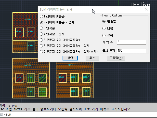 SUM - 숫자문자 레이어별 집계표 작성 (다중구역,DCL)