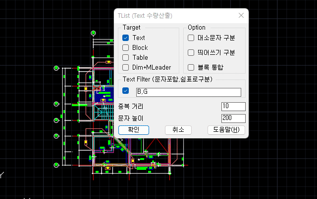 - 문자를 포함한 객체 또는 문자의 수량산출 (블럭,Table,치수선)